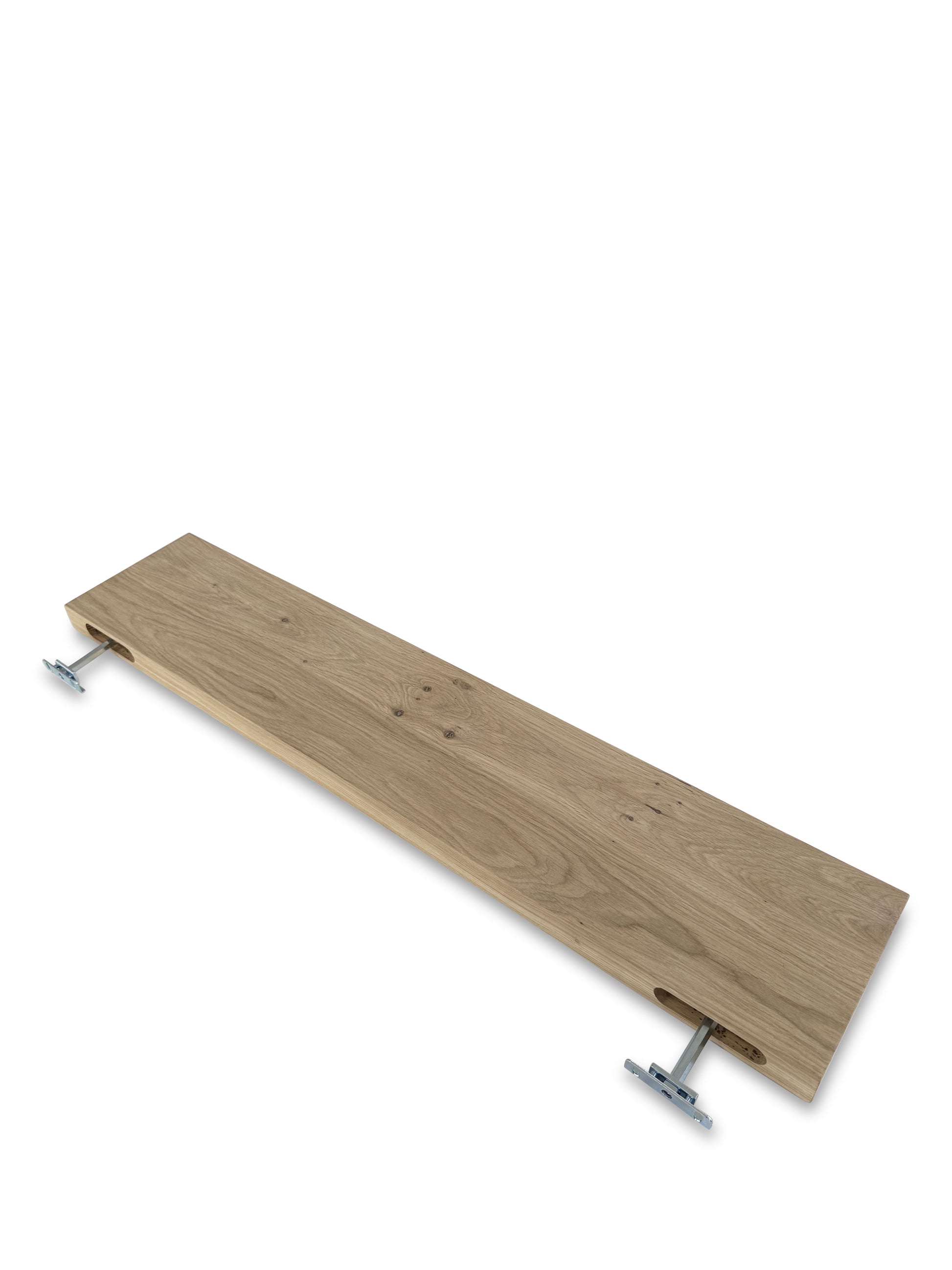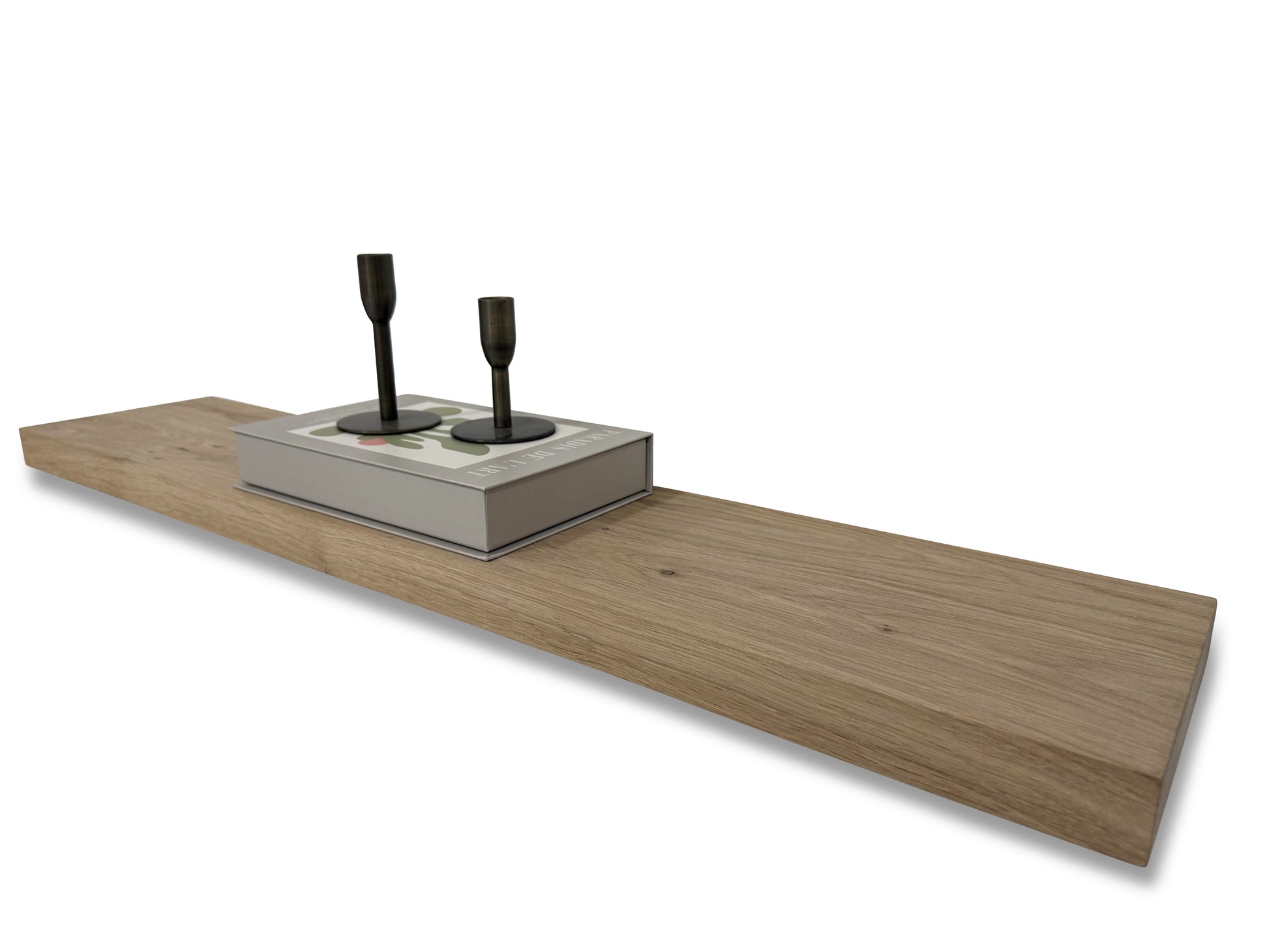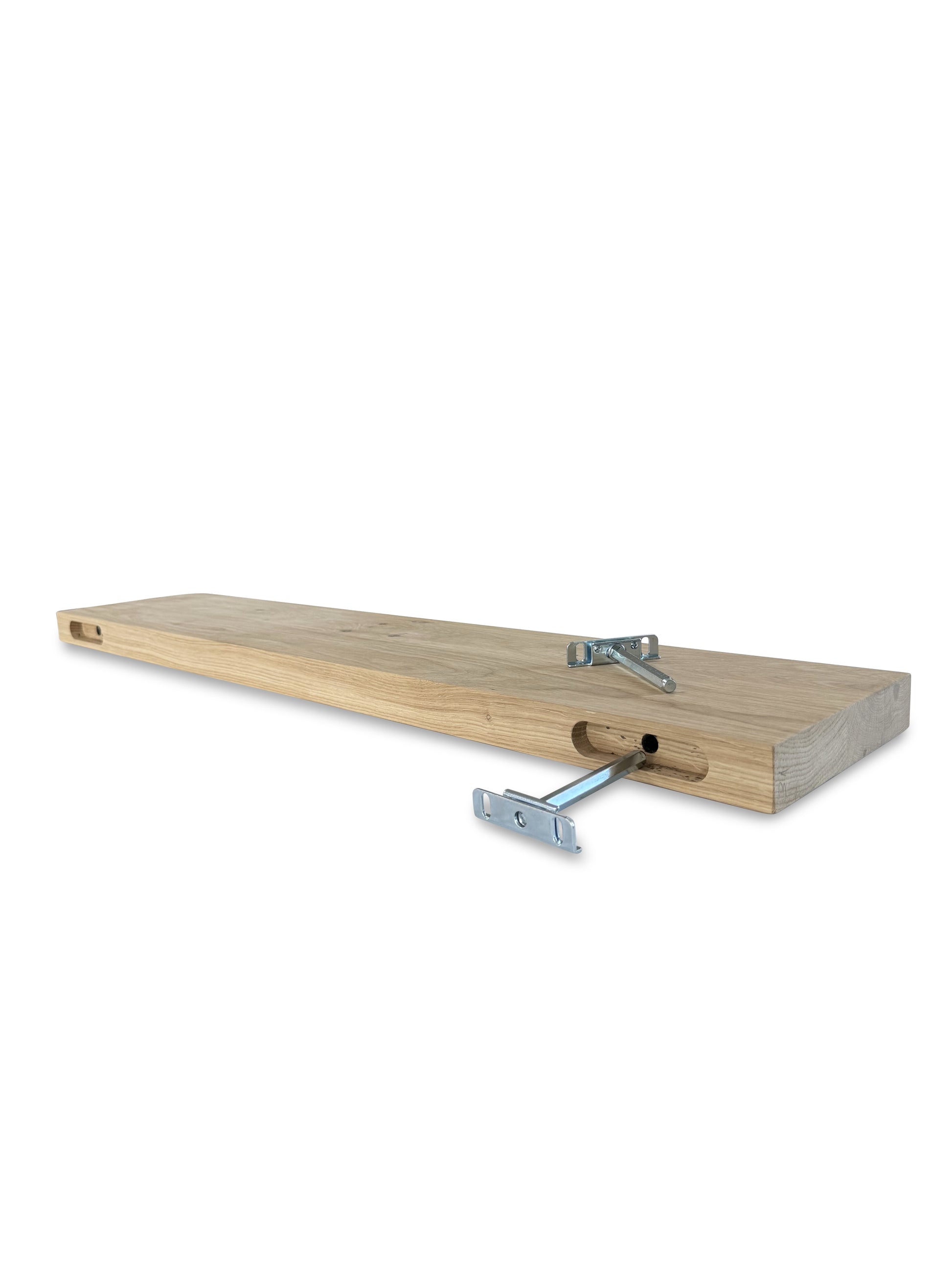 Wandplanken van massief eiken zijn populair en niet meer weg te denken in veel interieurs. Onze zwevende muurplanken zijn voorzien van een blind ophangingsysteem welke aan de achterzijde van de wandplank zijn ingefreesd en hierdoor geen beugels zichtbaar.