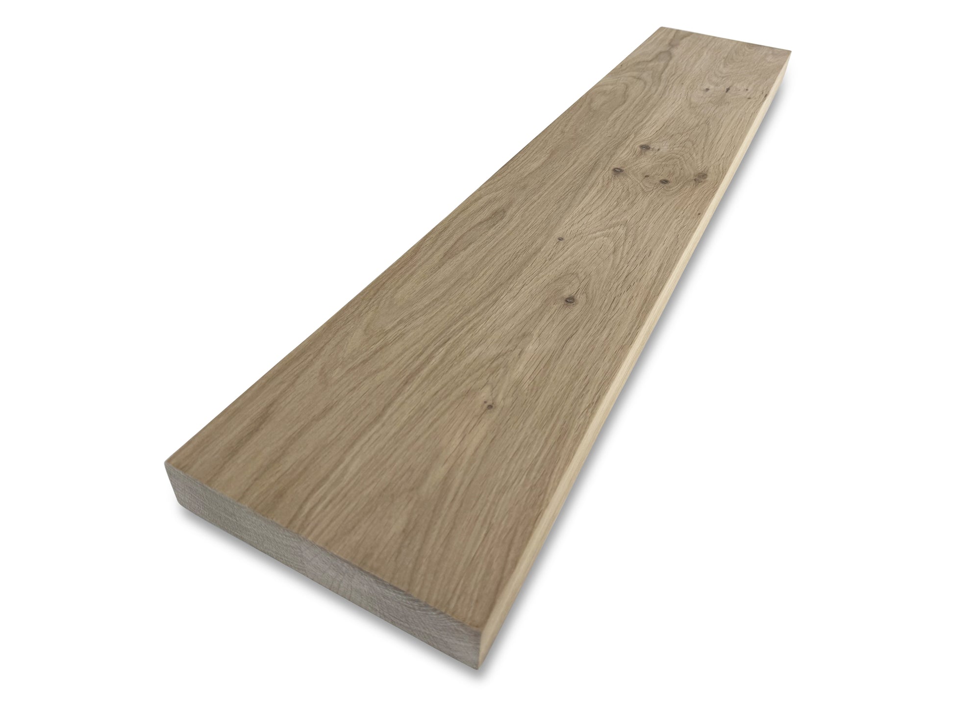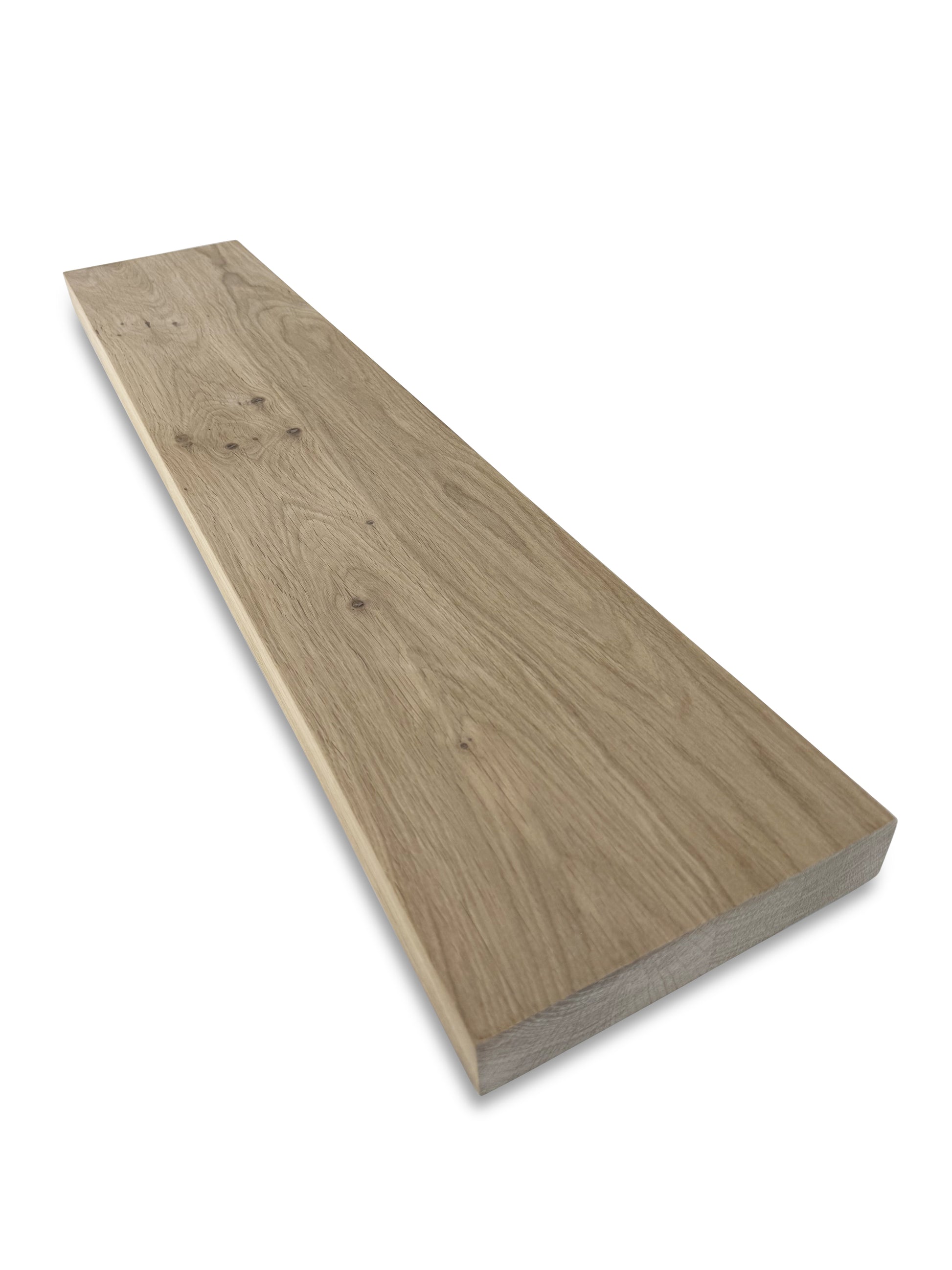 De eiken wandplank wordt onbehandeld geleverd, deze kan gemakkelijk afgewerkt worden naar gewenste kleur, eventuele noesten zijn gevuld en geschuurd.