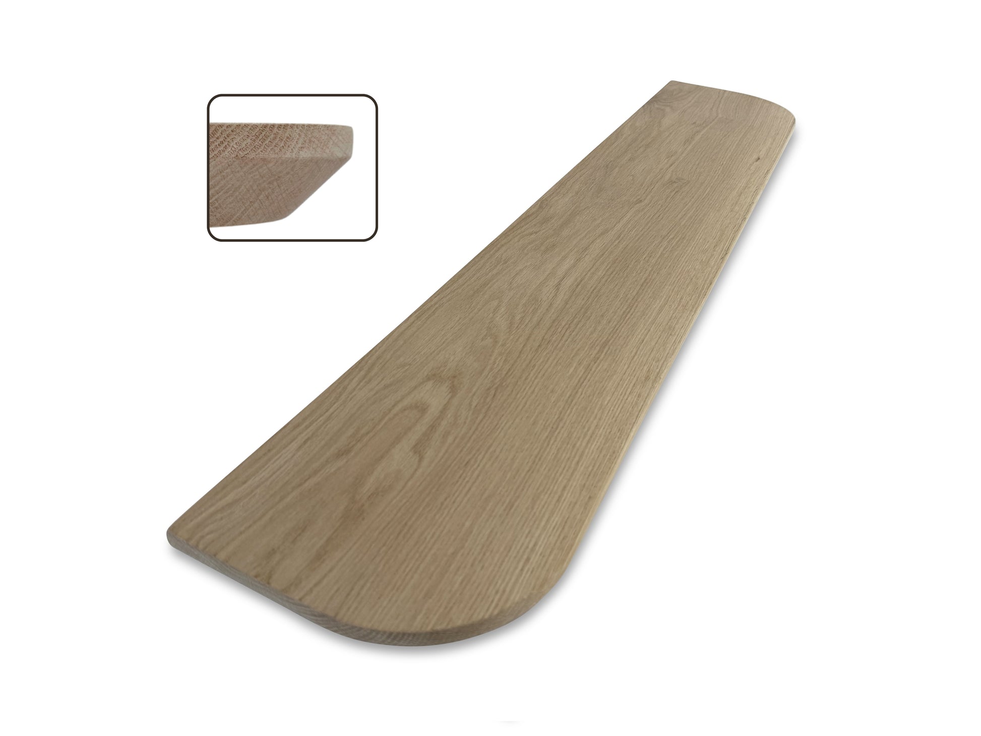 De eiken wandplank wordt onbehandeld geleverd, deze kan gemakkelijk afgewerkt worden naar gewenste kleur, eventuele noesten zijn gevuld en geschuurd.